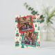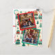 Um cartão de Natal adorável com um charme antigo aconchegante e caloroso. É um modelo de duas fotos. Você pode carregar seu retrato de família das festas na área de personalização. O fundo são pequenas árvores de Natal vermelhas e verdes e trens fofos. O cartão é em verde antigo suave, branco e vermelho.