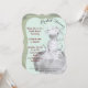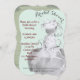 Noiva linda e artística com sorriso e fitas toda arrumada se preparando para o casamento parece emocionada. Ela está feliz e bonita no dia do seu casamento. O fundo é uma tonalidade clara de verde.