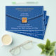 Modelo de panfleto de escritório de advocacia profissional com design de maleta, ideal para serviços jurídicos e marketing de advogados.