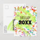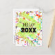 Este cartão postal do ano novo apresenta confetes coloridos e um rabisco verde. Personalize o texto na frente e no verso, remova qualquer texto ou clique em personalizar para selecionar um estilo de fonte, tamanho e cor diferentes de sua preferência.