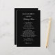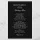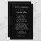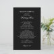 Simples cardápio de casamento preto. Texto branco impresso em fontes modernas com fácil preenchimento de seções modelo. Nomes no topo e data de casamento no fundo. Adicione aperitivos, cursos, entrentos, deserto, etc. como quiser para preencher o meio do papel. São aplicáveis descontos em massa. Veja o menu de 4 x 5 polegadas menor abaixo.