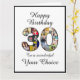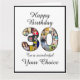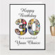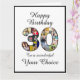 A frente deste design de cartão de saudação de aniversário de 30 anos clássico apresenta o número "30" preenchido com 12 das suas fotos. A mensagem "Parabéns," fica no topo com os dois conjuntos inferiores de texto disponíveis para você personalizar. Faça disso um cartão personalizado exclusivo para seu melhor amigo, filha, parceiro, goleiro, etc., a escolha é sua. O dentro apresenta mensagens de saudação de aniversário personalizadas em ambas as páginas, ou talvez possa ser apagado e deixado o vazio se uma mensagem for escrita manualmente. Um cartão de aniversário de fotos personalizável como este é uma maneira divertida de enviar uma mensagem em comemoração do vigésimo aniversário de alguém. As fotos usadas como exemplos são todas imagens quadradas com a figura principal aproximadamente central. O design está disponível em uma faixa de cheios de tamanhos até a placa de tamanho gigante. Pop na nossa loja para mais cartões de aniversário de excelente e ideias de presentes.
