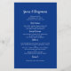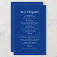 Marinho azul do cardápio de casamento com texto branco. Personalize várias seções e linhas de texto nesta placa simples de barato. A fonte do script é usada para nomes da noiva e do noivo no topo, e para os títulos da seção. Cada seção do texto pode incluir 2 ou 3 linhas, e o número da entrada pode ser 2 ou 3. Além disso, inclua a data e o local do evento no topo. Cor azul do marinho em ambos os lados.