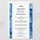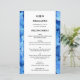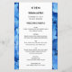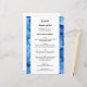 Modelo de cardápio azul de borda floral. Monograma de três letras no topo com texto preto para a lista de menus.