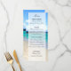 2 modelo de cardápio de Casamento Lado para Casamento de Praia. O primeiro lado mostra aperitivos, salada, prato principal e sobremesa contra um dramático oceano azul com praia arenosa. Nuvens brancas puffy ao fundo com uma bela sombra de céu azul. O lado de trás tem a mesma bela foto de uma praia perfeita. Pode ser personalizado de qualquer forma que você quiser com os campos, seleção de fontes e cor de fontes. Perfeito para a noiva e o destino da praia de noiva.