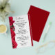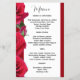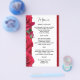 modelo de menu de casamento de barato com rosa vermelha. Impresso em papel folheado, o design é bonito e é perfeito para casais em um orçamento. Três rosas vermelhas realísticas decoram o lado esquerdo do papel de 5 x 8 polegadas. Personalizar com uma lista de itens de menu usando o parágrafo fornecido. Adicione espaços onde necessário e use a ferramenta design para personalizar ainda mais o menu. Eles vêm em incrementos de 25 e têm uma cor vermelha sólida no verso.