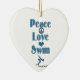 A parte dianteira diz que a "Paz-Amor-Natação" e então você pode adicionar sua foto favorita da natação à parte traseira & o nome, ano, ou sua escolha de fraseio. Faz um grande presente para o nadador em sua vida, ou um treinador.