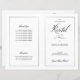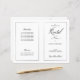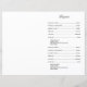 Este programa é uma página 8.5 x 11 que requer que você o dobre para montá-lo. A borda da linha desaparece no canto e isso é intencional para corresponder ao estilo do script. Programa clássico de considerando preto e branco subestimado, com um toque moderno, que inclui o desenho elegante da palavra "Considerando" no "cobrir" externo.