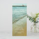 Programa de cerimônias de casamento alto e duplo com praia e fundo de água. O farol de entrada Ponce está visível no topo da imagem. Na frente, o texto é branco e preto no verso. Significado para uma celebração casual de casamento à beira-mar, o texto é fácil de mudar e usar espaços onde for necessário para preencher. Mostrada em um tamanho de cartão alto de 4 x 9 polegadas, mas a imagem funciona para todos os tamanhos. Escolha outro tamanho e distribua o texto se o seu for uma cerimônia mais longa.