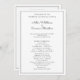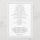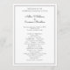 Modelo de programa de casamento branco simples com texto de ambos os lados. O design de amostra tamanho 5x7 ajustado em alguns outros tamanhos. As placas brancas e achatadas têm upgrades opcionais de papel. As fontes de script impressas e manuscritas estão em preto e ambos os lados têm linhas pretas e cinzas finas ao redor das bordas para enquadrar o texto. Personalize o título, inclua a data e a hora do evento, a ordem da cerimônia e liste a festa de casamento. Um modelo no verso pode ser usado pelo casal para escrever uma mensagem pessoal para os convidados. Ou use o espaço para mencionar parentes que não estão mais vivos, mas presentes em corações. Esta é uma design de programa simples e neutra que funciona para muitos tipos de cerimônias de casamento.