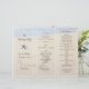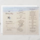 Coração na modelo do programa de casamento de areia. Dobraram em três para criar um programa de casamento único e belo tema da praia. Personalize facilmente usando as linhas de texto modelo fornecidas. Dois estrelas-do-mar decoraram a terceira frente que tem quatro modelos usando texto marrom. A água do oceano pode ser vista no topo batendo contra a praia com um grande coração desenhado na areia da praia. Esta imagem será impressa APENAS EM UM LADO. O inverso será simples.