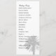Modelo do programa de casamento de palmeiras para o casamento na praia. Inclui introdução, cerimônia, festa de casamento e reconhecimentos. Parte do conjunto completo de papelaria de casamento.