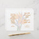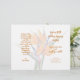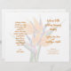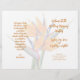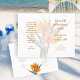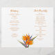 Modelo do programa de casamento dobrado com flores laranja-do-paraíso. Publicação técnica com quatro páginas para personalizar em script e texto laranja impresso. Incluir uma mensagem para familiares e amigos na última página / parte traseira do programa quando dobrado.