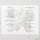 Modelo do programa de casamento dobrado com fundo de flores de magnólia. Corações entrelaçados decoram a frente, sob os nomes, e na última página acima da mensagem "obrigado você" para os convidados. A magnólia meridional é uma flor grande e branca e esta design é perfeita para qualquer casal casando no sul.