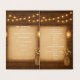 Elegante design do programa de casamento rústico, com frascos brilhantes de mason, luzes delicadas de cordas e um fundo bege macio. Perfeito para programas de cerimônias de casamento dobradas, esta modelo inclui espaço para sua ordem de cerimônia, festa de casamento e toques pessoais. Um tema rústico eterno ideal para casamentos de celeiros, celebrações ao ar livre ou eventos inspirados no país.