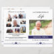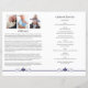 Um belo programa de funeral elegante com design azul e banda azul. Os recursos incluem uma grande foto na frente, a colagem de fotos na página de trás com 9 fotos e muito espaço para um obituário e ordem de serviço (ou outro texto de sua escolha nas páginas de dentro. Todo o texto é fácil de editar e pode ser personalizado para criar um programa de funeral pessoal e memorável para o seu amado. Este programa funerário impressão de dois lados em uma folha de solteiro de papel Carta (8,5 x 11 polegadas). Quando dobrado, isso cria um livreto com 4 páginas de metade do tamanho da letra (8,5 x 5,5 polegadas por página).
