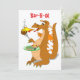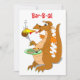 Estes convites de festas de bar-b-que ostentam um dragão alaranjado e marrom dos desenhos animados. Está respirando chamas em seu hamburguer. Acima, diz, "grelha!" em uma pia batismal vermelha brincalhão.