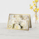 Cartão elegante apresenta lindas rosas brancas emolduradas com uma borda dourada. Lindas para casamento, aniversário ou outras ocasiões especiais e convites. Personalize o texto da capa. Em branco por dentro.