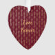 Padrão de deco de arte vermelha e dourada, forma cardíaca, modelo, pronto para personalizar. Amor para sempre ou insira seu próprio texto. Texto apenas de um lado do ornamento.