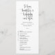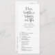 Este elegante programa plano de casamento apresenta uma elegante caligrafia e uma simples fonte de tipografia sans serif para uma aparência minimalista e moderna, que é uma bela maneira de informar aos seus convidados a ordem da sua cerimônia de casamento. A simplicidade desta design adiciona um toque de elegância ao seu casamento. Funciona bem com muitos temas de casamento e, definitivamente, um excelente adicional à sua papelaria de casamento. Basta personalizar os nomes e a redação em alguns passos fáceis e personalizar o Código QR e a hashtag para dar ao seu programa um toque pessoal agradável. Note-se que a elegante caligrafia das frases "amar, rir e alegremente para sempre", juntamente com as linhas e outras trabalho de arte gráficas e elementos não pode ser editada, suprimida ou movida. Eles estão consertados.