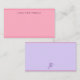 Placa de Nota Plana Personalizada Simples, Modelo Minimalista, Monograma Púrpura, Rosa.