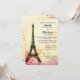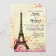 Sensação macia, romântica com cores pastel de de creme e de cor-de-rosa com os corações selecionados no fundo. Olhar antiquado contudo na moda para a noiva de hoje. A torre Eiffel é perfeita para o casamento temático francês ou francês. Edite facilmente para seu próprio convite do casamento. Apresente seus convites no estilo!