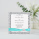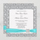 Elegante azul lacrimogêneo com convites para o casamento de rendas prateadas. Adicione os seus detalhes à frente e atrás adicionando os detalhes do evento, estilo da fonte, tamanho da fonte e cor e texto.