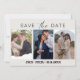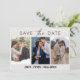 Este cartão de save the date de modelo de script moderno com 3 fotos é perfeito para um casamento minimalista. O design simples preto e branco apresenta uma tipografia de letra industrial única com estilo moderno. Personalizável em qualquer cor. Mantenha o design minimalista e elegante, como está, ou personalize-o adicionando sua própria foto e texto.