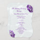 modelos bonito e roxos do programa de casamento de hydrangea. A forma do suporte pode ser alterada e o texto é roxo para corresponder às imagens de flores realistas que decoram a frente. Personalize ambos os lados com texto de cerimônia.
