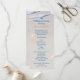 Areia de praia, modelo de alto programa de casamento com um tema tropical de estrelas rosa/laranja. O texto modelo é um tipo de letra casual, escrito à mão, em azul. Impresso no jornal, esta é uma maneira barata de ter programas bonito para a sua cerimônia de casamento.