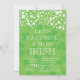 Vamos comer, beber e ser Ruas irlandesas. O convite do dia de Patrick, com um campo de bonito shamrocks brancos, está em um novo fundo verde primavera.