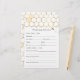 Cartão de predições de bebês com pentes de mel de ouro e abelhas-zunido para corresponder à nossa Coleção de Abelhas de Ouro. Uma maneira divertida de interagir com convidados de chá.