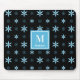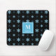 Modern Blue Geometric Floral Monogram Mouse Pad