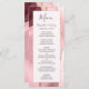 This elegant, modern wedding menu features a watercolor blush pink agate background trimmed with gold faux glitter. The text appears in elegant charcoal gray handwriting and copperplate fonts on a blush rectangle. The agate design is repeated on the reverse.
