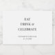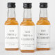 Uma simples garrafa moderna de mini licor rotula os seus favores de festa de casamento com "Coma Bebida e Comemore", os seus nomes e a data do seu casamento em tipografia elegante.