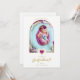 The central element of this proposal is the dome-shaped arch, which contains a picture of the adorable baby extending this special invitation. This customized image adds a touching and personal touch to the card, making the proposal even more meaningful.