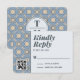 Streamline your wedding planning with this Modern Dusty Blue Art Deco RSVP card. This stylish response card features a sophisticated interlocking geometric pattern in steel blue and sand beige, perfectly matching your wedding suite. The front includes a clear "Kindly Reply" section with a functional QR code, allowing your guests to scan and RSVP digitally in seconds. The back showcases a full-pattern design with a minimalist circular monogram for a high-end finish. Ideal for tech-savvy couples hosting a chic, modern, or architecturally-inspired wedding. Fully customizable text and QR link for a professional and seamless guest experience.