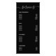 Customize this modern elegant black menu card to easily create a price list for your services. Perfect for hair salons, nail salons, lash extension and makeup artist services, beauty bars, spas, esthetician services and more etc. Use the customize tool to change font and background colors and remove/change social media icons. Contact us if you need help: yourstyle@pgco-designs.com.