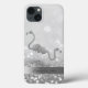 Inflamingos cor-de-rosa adoráveis em fundo prateado com brilho com seu nome.