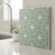 This minimalist tile design features an simple abstract in soft green and ivory. The pattern of rounded squares filled with line arrays, blends sophistication with nature-inspired shapes for effortless coordination across home décor and stylish accent pieces. A versatile look that brings a modern, Scandinavian, and minimalist décor aesthetic to any room. Search ID1192 to see other products in this unique design set. Note: design may contain generative content