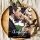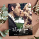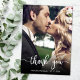 A Mão Moderna Inscreve O Cartões de agradecimentos Fotográfico De Casamento. Obrigado de casamento do Na moda moderno, modelo de cartão postal com uma foto vertical do cheio na frente, com o texto de sobreposição "Obrigado" em uma letra de script de tipografia escrita à mão, em branco, na foto. Personalize o nome personalizado e a mensagem do obrigado. Se preferir escrever manualmente a sua nota, basta eliminar o texto de amostra para obter mais espaço. Se você precisar de ajuda ou item correspondente, entre em contato comigo!