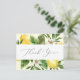 Este cartões de agradecimentos amarelo-limão moderno é perfeito para um casamento de primavera ou verão. O design mediterrânico rústico apresenta limões aquosos brilhantes e bonitos com flores brancas boêmicas e folhas verdes elegantes. Personalize a parte traseira do cartão com seus nomes e uma mensagem de obrigado. Como alternativa, deixe o vazio da seção modelo da mensagem do obrigado para escrever uma nota personalizada em cada cartão após a sua chegada. Essas cartas podem ser usadas para um casamento, chá de panela ou qualquer evento especial.