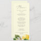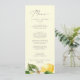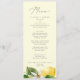 Este moderno cartão de janto de casamento amarelo de limão é perfeito para um casamento de primavera ou verão. O design mediterrânico rústico apresenta limões aquosos brilhantes e bonitos com flores brancas boêmicas e folhas verdes elegantes. Este menu pode ser usado para recepção de casamento, janto de ensaio ou qualquer evento.