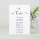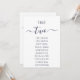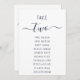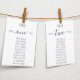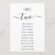 In the upper part, there is the table number written in a handwriting script and the word Table above, in smaller caps (hand letters). Under them, there are the 10 guest names, in similar hand letters. All text is navy blue, the background is white.