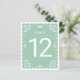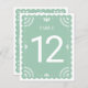 Crie uma atmosfera festiva com este número da mesa de casamento papel picado. Este lindo número de tabela tem um clássico papel picado design em um plano de fundo verde sábio. Seus hóspedes vão adorar chegar à mesa deles com essa pop de cor divertida. Uma adorável adição a um casamento mexicano ou sudoeste. Misturar e combinar com as outras cores do meu Modern Papel Picado Mexicano Wedding Suite.