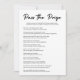 Apresentando o nosso Cartão de Jogo do Chá de panela Moderno - uma reviravolta contemporânea sobre o entretenimento tradicional do chá de panela! Este jogo, também conhecido como Pass the Poem, acrescenta um elemento único e divertido à sua celebração. Feito com talento e sofisticação modernos, este cartão de jogo define o palco de um chá de panela inesquecível. Perfeito para chás e festas de solteira casais, promete uma noite cheia de risos e alegria, já que os convidados participam dessa atividade engajada. Adaptada para a noiva e sua jornada para "Eu faço", este cartão de jogo garante uma experiência inesquecível para todos os participantes. Único e personalizável, ele adiciona um toque personalizado ao seu evento, fazer que seja realmente memorável para a noiva e o noivo. Elevem sua celebração com nosso Cartão de Jogo de Chá de panela Moderno Passe o Prêmio e criem memórias queridas enquanto celebram o amor e o riso com a futura Sra. e seus entes queridos.