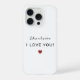 A modern personalized Valentine phone case featuring a handwritten name, the message “I Love You,” and a minimal heart accent. Designed with a clean, timeless aesthetic, this case adds a personal and romantic touch while protecting your phone. A thoughtful Valentine’s Day or anniversary gift for someone special who appreciates modern, understated design.