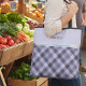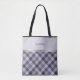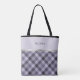 Carry your essentials in style with this sophisticated purple plaid tote bag. This design features a striking contrast between a soft lavender top and a rich, multi-toned purple plaid bottom. A sleek metallic silver divider adds a touch of modern luxury, making it more than just a standard tote—it’s a fashion statement. Durable and versatile, this bag is perfect for daily commutes, a stylish gym bag, or as a chic carry-on for your next flight. The front features a customizable name template (shown as "MELISSA") in a clean serif font. Its spacious design ensures you have room for everything from a laptop to travel essentials while maintaining a polished aesthetic.