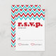 Modern Red and Aqua Chevron & Lovebird RSVP