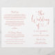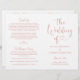 Modern wedding ceremony sheet programs feature a stylish rose gold typography design with chic calligraphy script and a heart accent. The simple and elegant custom text that can be personalized for your bridal party, ceremony information, and thank you message. Note: these text weight paper programs arrive flat and require folding to assemble.